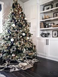 Last year i embraced red plaid, and this year i'm embracing silver and gold! black christmas tree decorations. A snowy flocked christmas tree decorated in silver and gold adds a big dose of holiday cheer to this modern farmhouse living room.